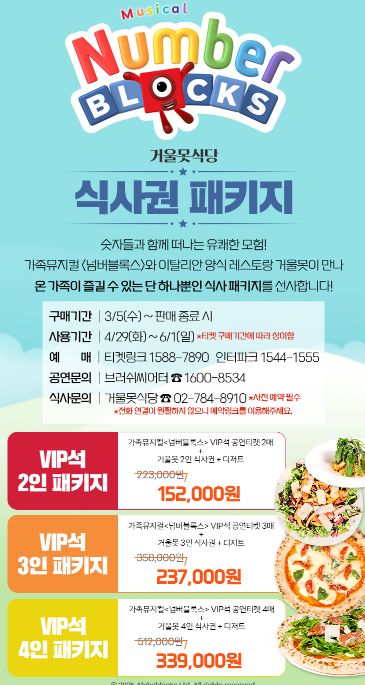 358,000원→ 237,000원 - VIP석 4인 패키지 :