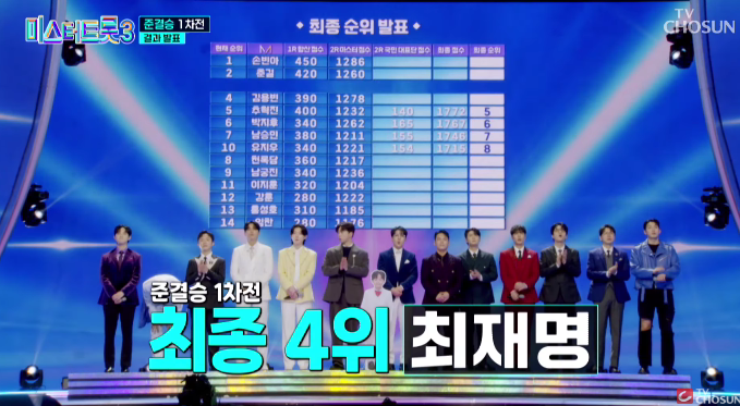 미스터트롯3 준결승1차전 결과가 드디어 공개되며 시청자들의 기대가 한층 달아올랐습니다. 이번 라운드는 결승을 목전에 둔 무대답게 치열한 경쟁과 극적인 반전이 이어졌는데요. 여러 참가자 중에서도 손빈아가 가장 두드러진 존재감을 뽐내며 1위를 확정 지었습니다. 트롯 열풍 속에서 새롭게 태어나는 스타들이 어떤 무대와 스토리로 시청자들을 사로잡았는지, 그 현장 분위기를 요약해 살펴보겠습니다.