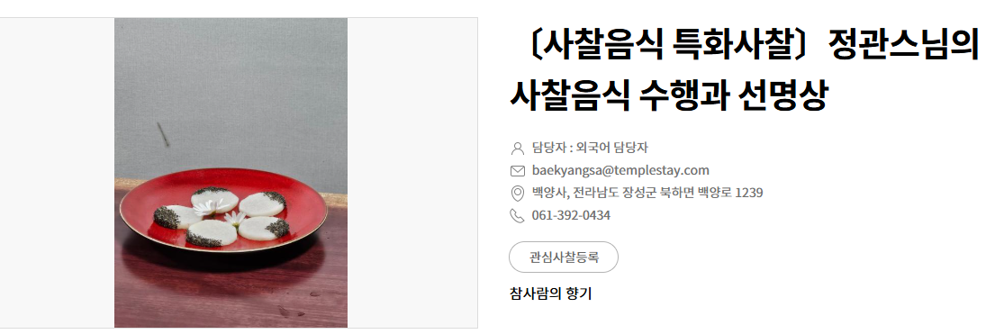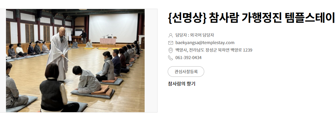 - 문의처: 061-392-0434 / baekyangsa@templestay.com