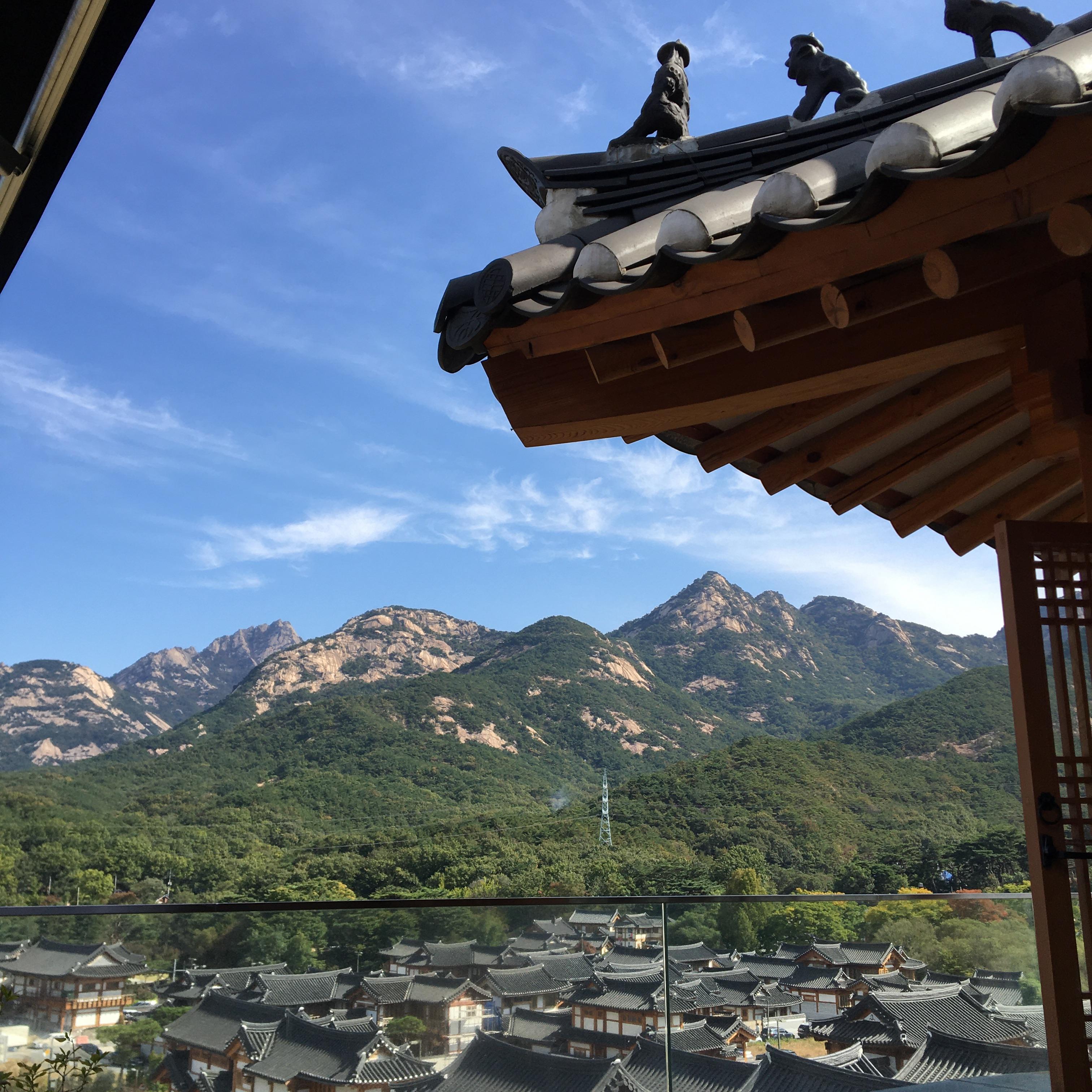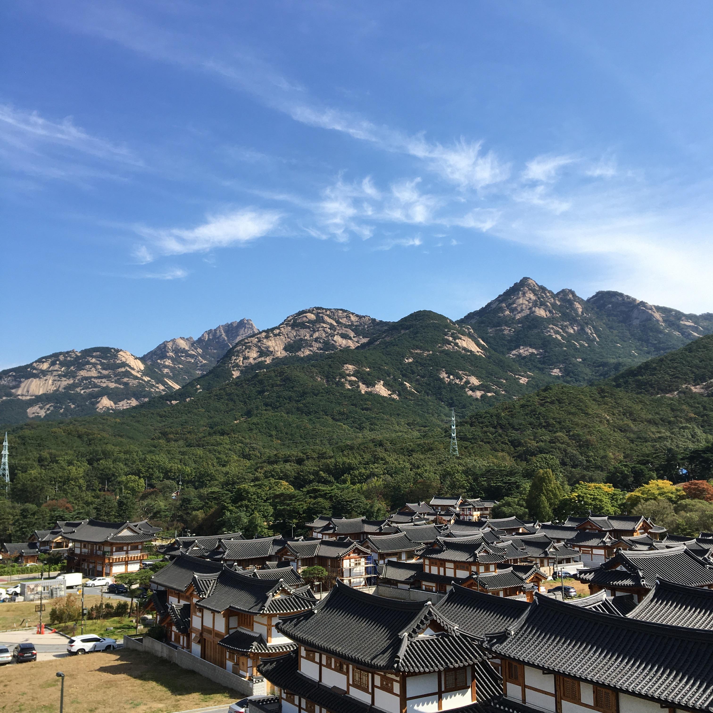 파란 하늘에 우리의 멋진 한옥이 어우러지는 이쁜 동네예요!