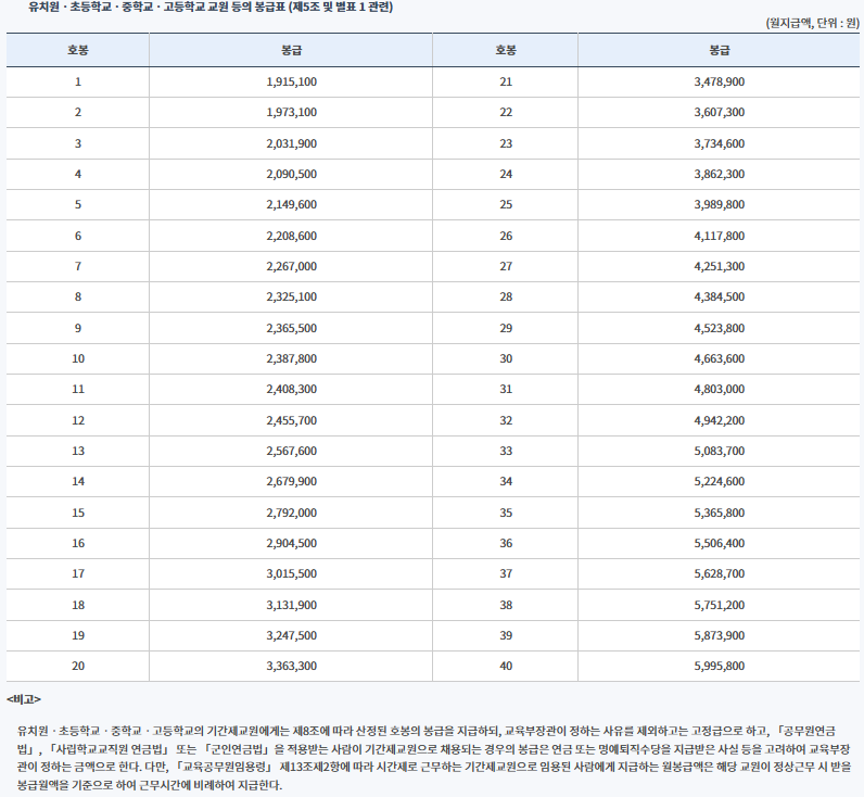 2025년 교사 호봉표가 확정되면서 예비 교사뿐 아니라 현직 교사들의 관심이 쏠리고 있습니다. “교사는 공무원인데, 호봉이 어떻게 책정될까?”라는 궁금증을 갖는 분들도 적지 않은데요. 이번 글에서는 유치원, 초등학교, 중학교, 고등학교, 그리고 국립대 교원까지 폭넓게 적용되는 2025년 교사 봉급 체계와 함께 수당, 공제 사항 등을 정리해 보았습니다. 교직에 종사하거나 준비 중이라면 주목해 보세요.