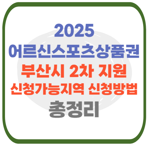 부산 전체 구·군 중 상당수에서 어르신 스포츠상품권 2차 신청을 진행 중이며, 일부 지역은 조기 마감 가능성이 있습니다.
