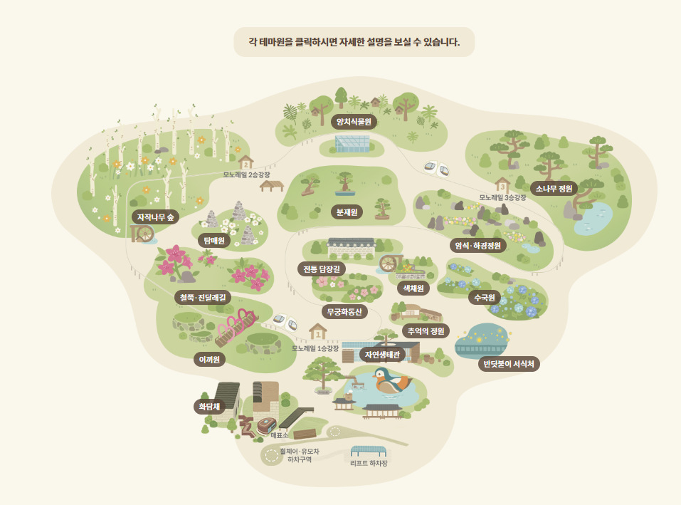 화담숲은 언덕이 많아 걷기 힘들 수 있으므로, 모노레일을 이용하면 더욱 편리하게 이동 가능합니다.