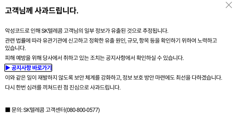 - SKT는 2025년 4월 22일, 일부 고객 유심 정보가 악성코드에 의해 유출되었을 가능성이 있다고 공식 발표했습니다.